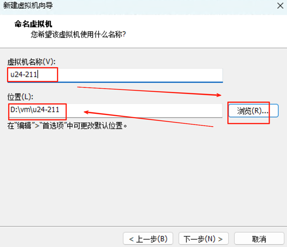// 输入虚拟机名称以及选择虚拟机放到哪里